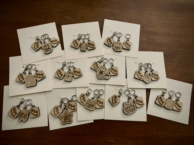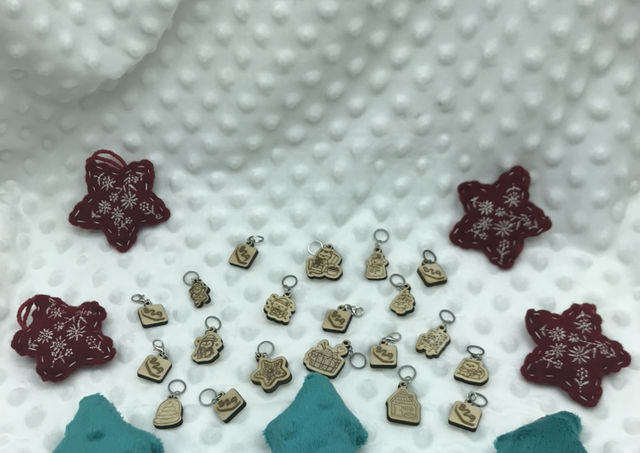 Anneaux marqueurs en bois pour le tricot sur le thème de Noël et de ma marque.